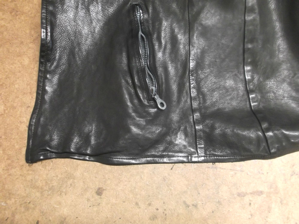 30枚目は31枚目との比較で着丈を短くする前のレザージャケットの裾付近の写真です。