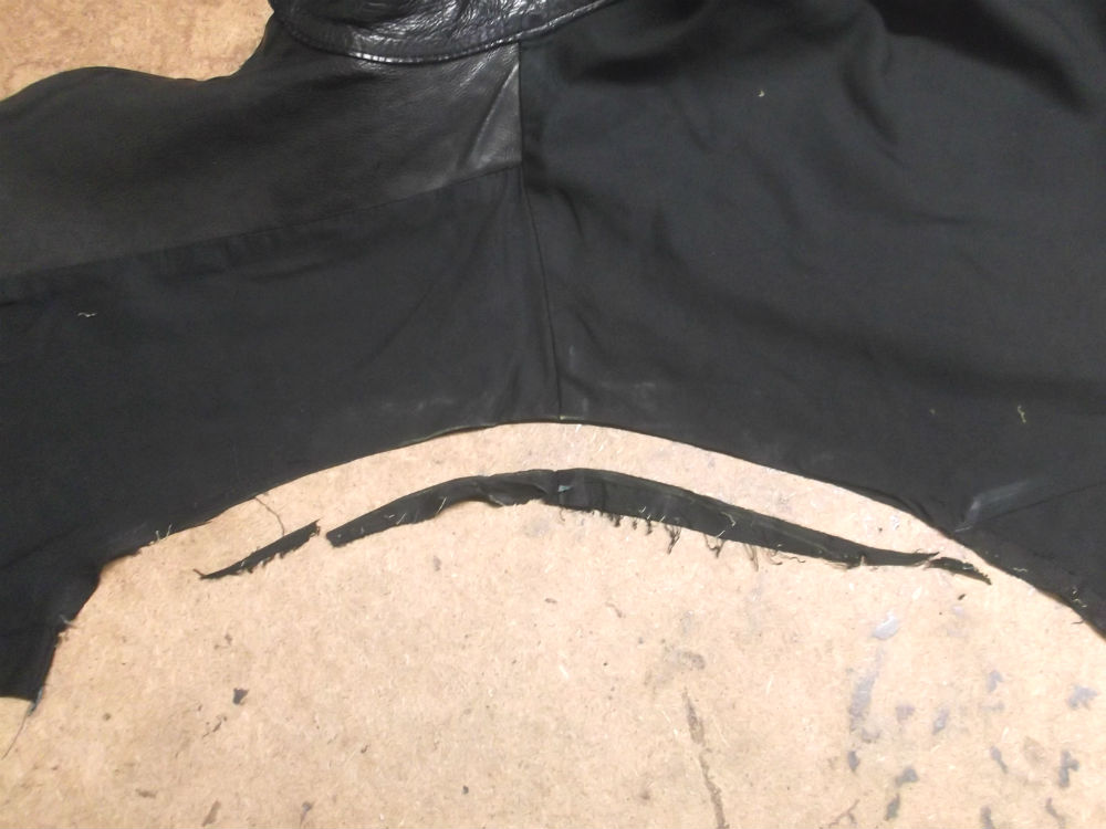 14枚目は表側の脇から裾のレザーをカットした写真です。