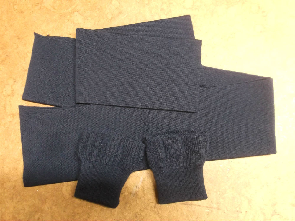 3枚目は取り外していく襟、両袖、腰回りのリブニットの写真です。