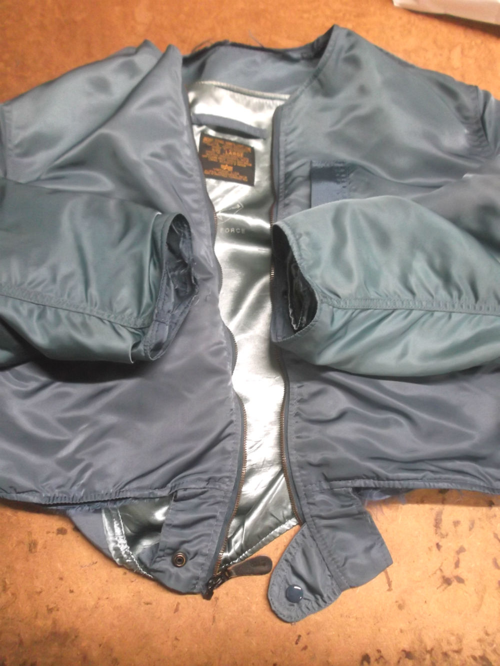 12枚目はL-2Aフライトジャケットから襟、両袖、腰回りのリブニットを取り外した後です。