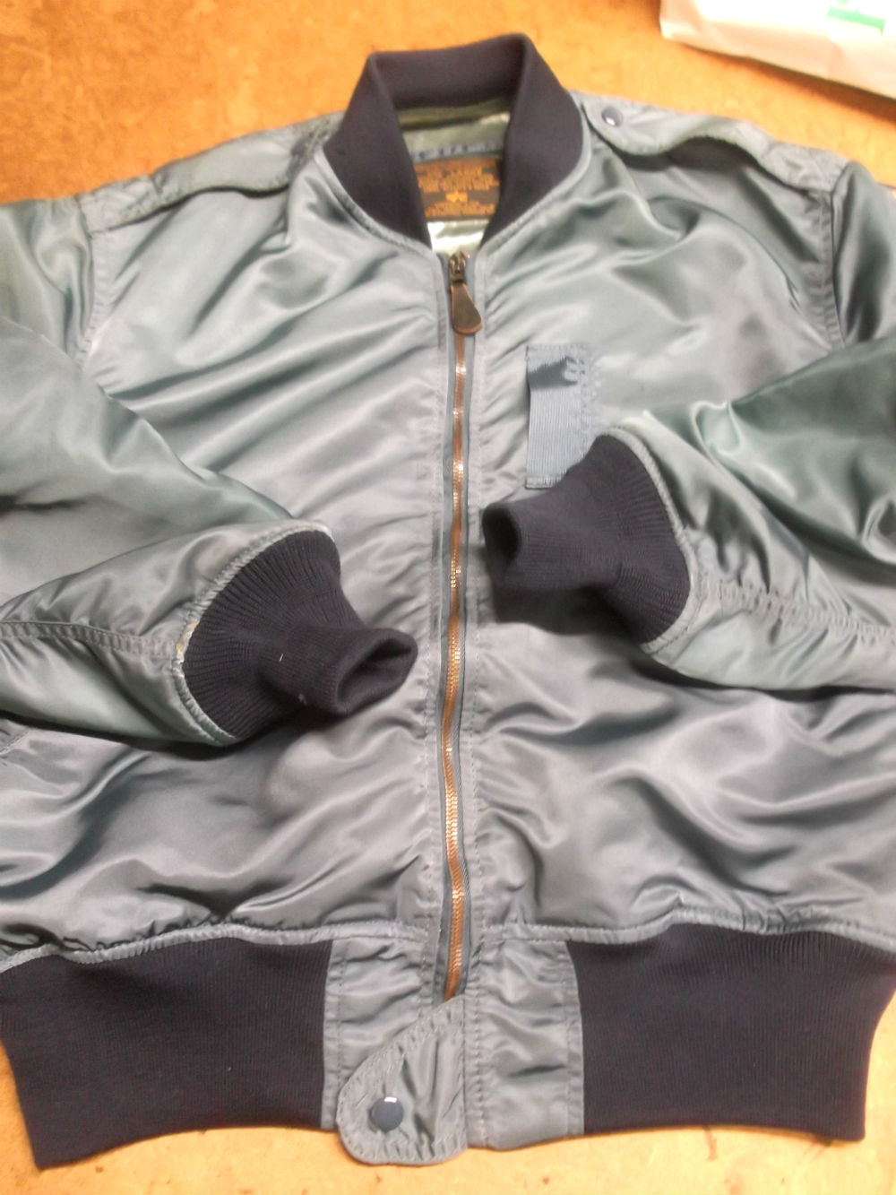 1枚目は静岡県からの郵送のお客さんの襟、両袖、腰回りを交換していくL-2Aフライトジャケットです。