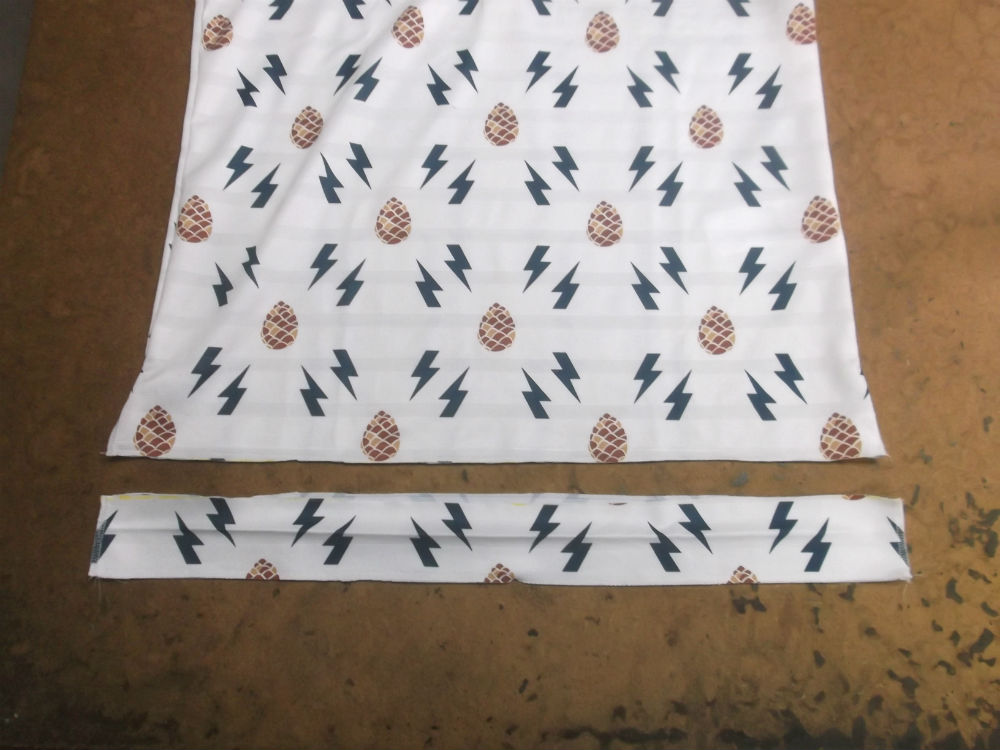 15枚目は裾の生地を見本の長さに合わせて生地をカットした写真です。
