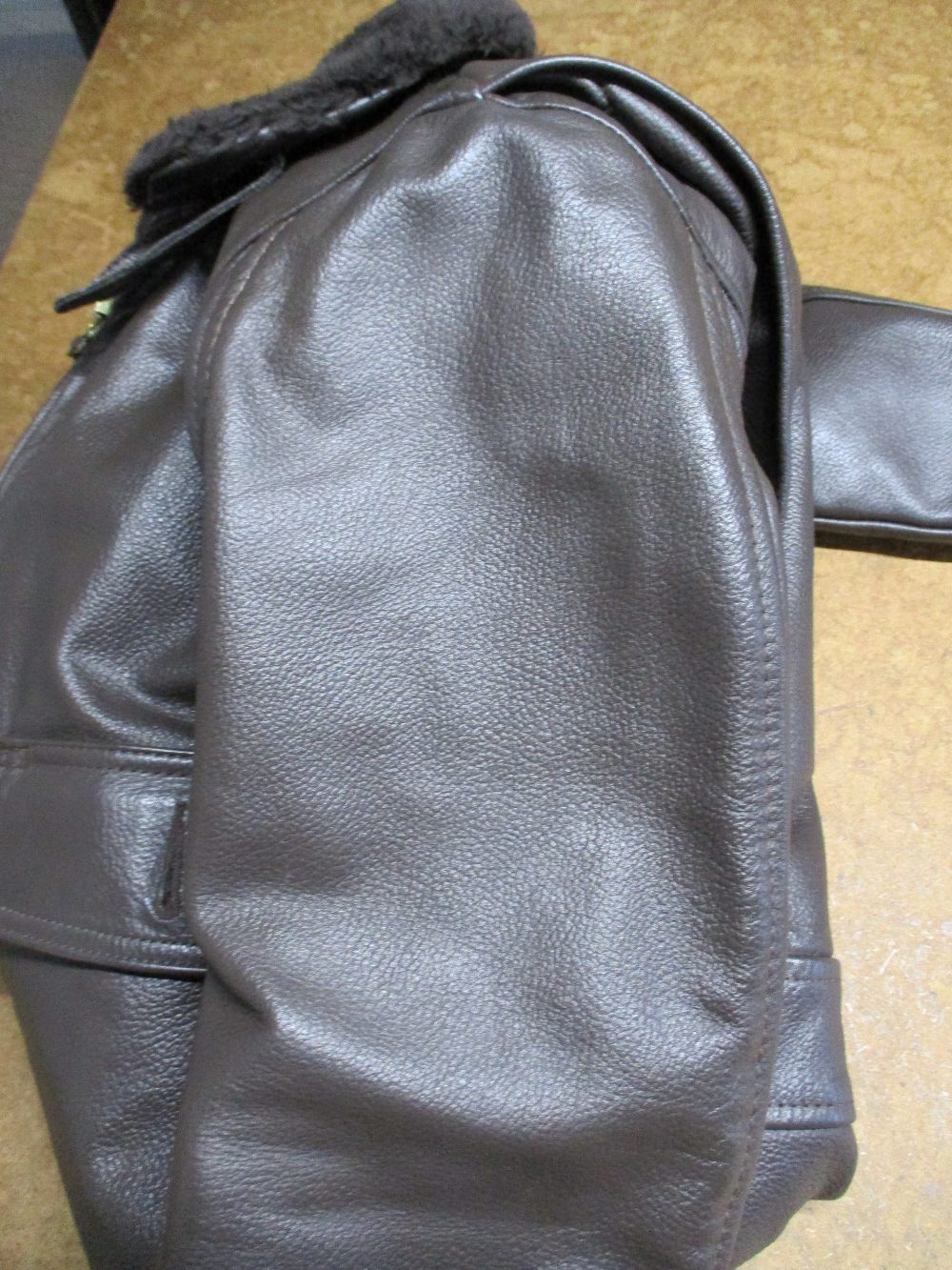 1枚目は埼玉県からの郵送のお客さんのワッペンを指定の位置に取り付けて両袖と腰回りを交換していくG-1フライトジャケットです。