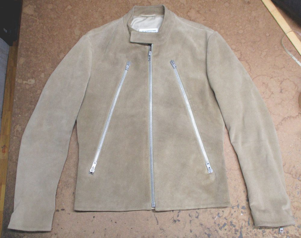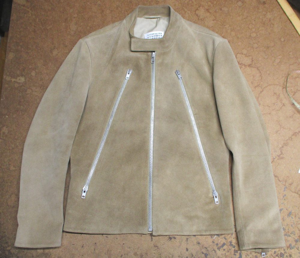 長い袖丈のマルジェラのスウェードジャケットをお客さんの好みの長さに短くリサイズ
