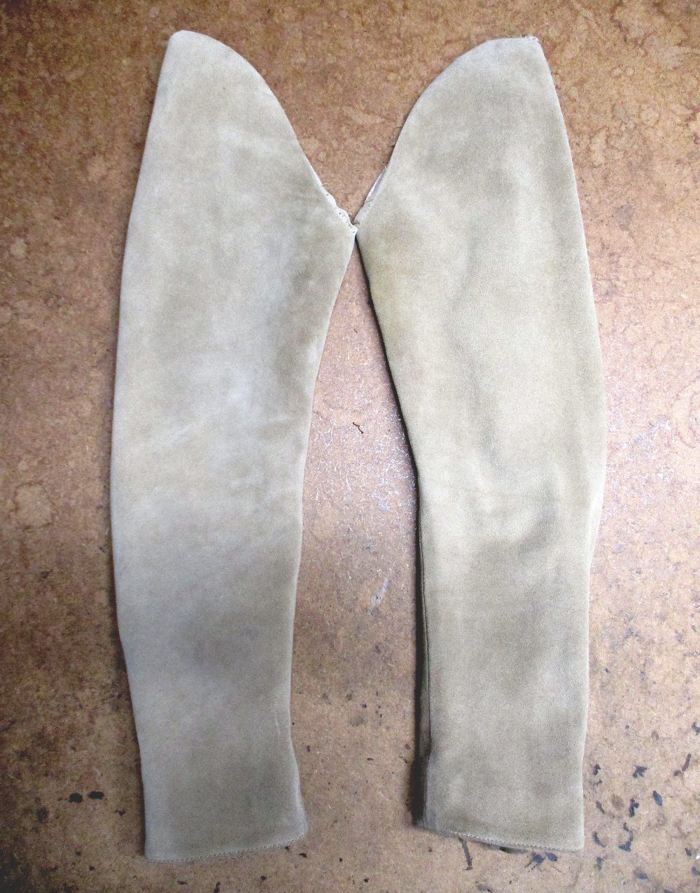 6枚目は裏地も表のスウェード部分と同じ長さを短くしていきます。