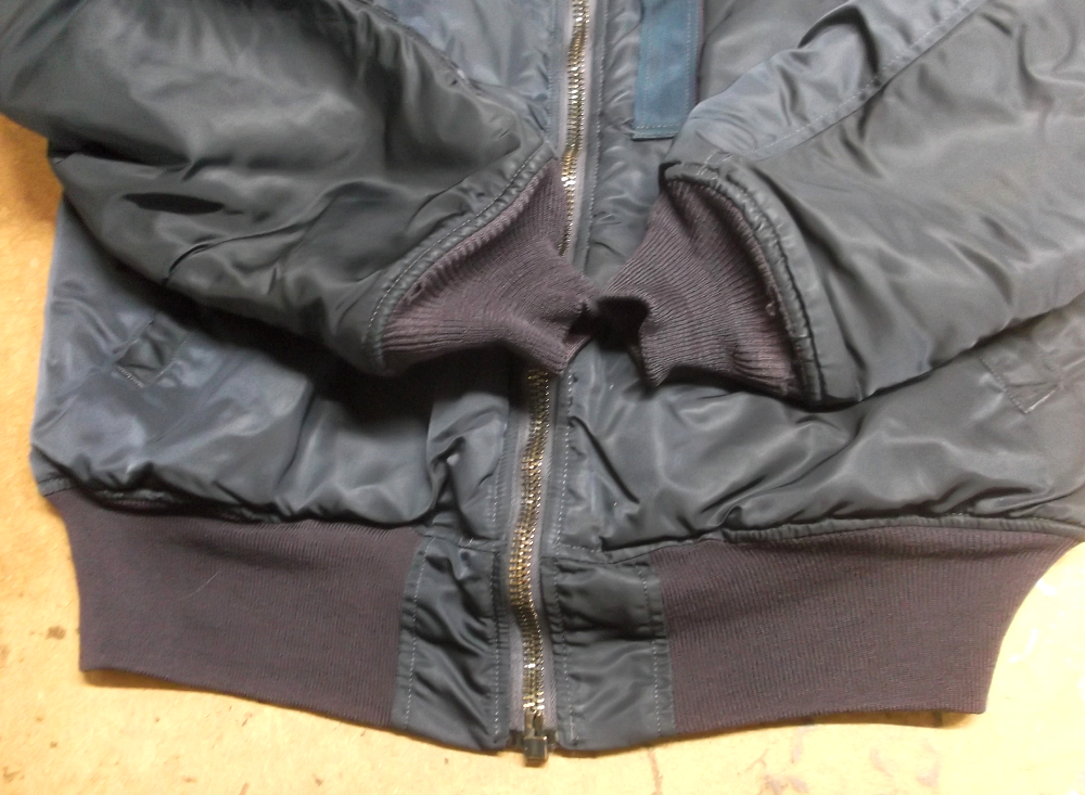 13枚目はB-15フライトジャケットに両袖と腰回りに新しく取り付けたリブニットの写真です。