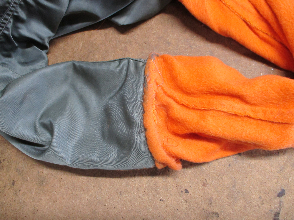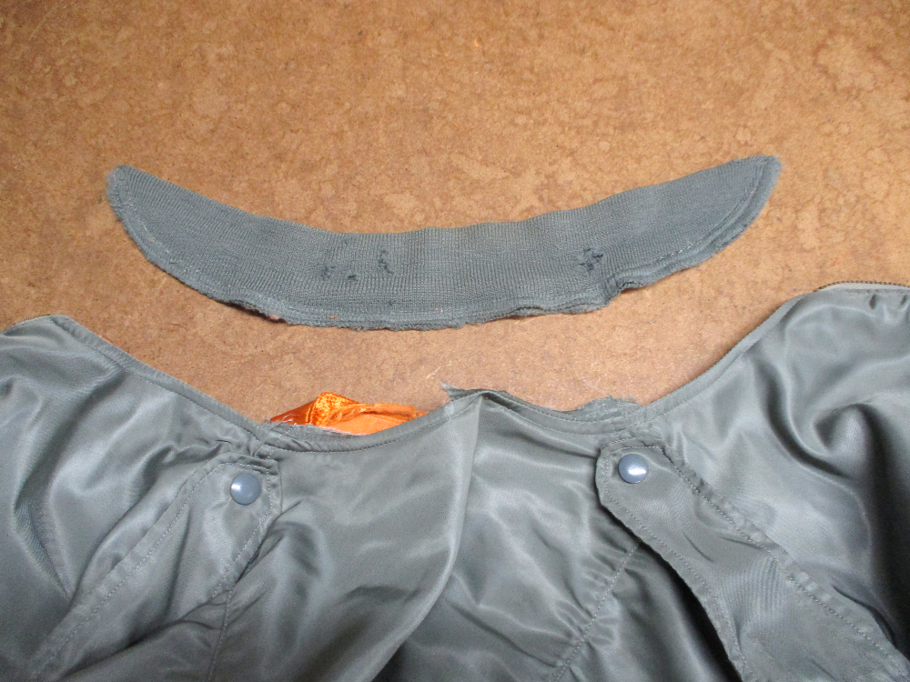 17枚目はL-2Bフライトジャケットの襟、両袖、腰回りに新しく取り付けたリブニットの写真です。