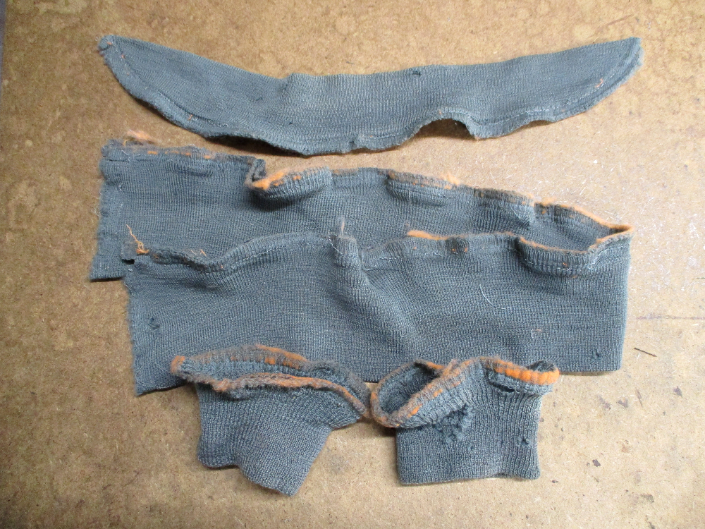 13枚目は取り外した襟、両袖、腰回りのリブニットの写真です。
