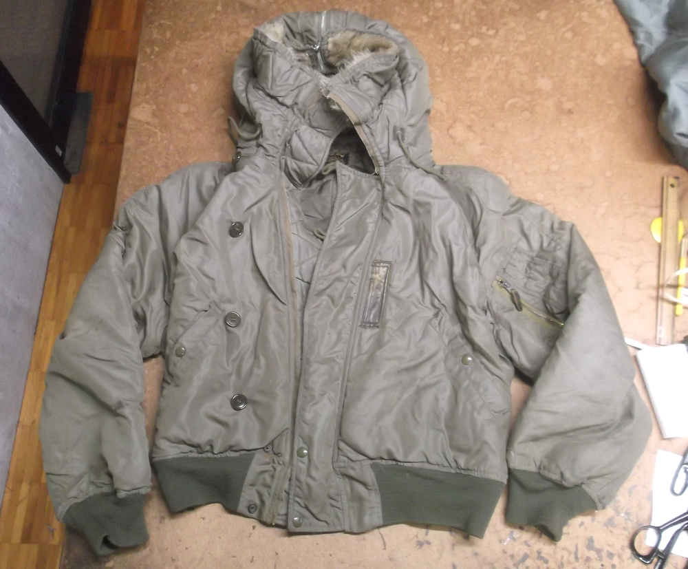 1枚目は来店されたお客さんのジッパーを新しくクラウンのキャスト製のものに交換していく前のN-2Bフライトジャケットです。