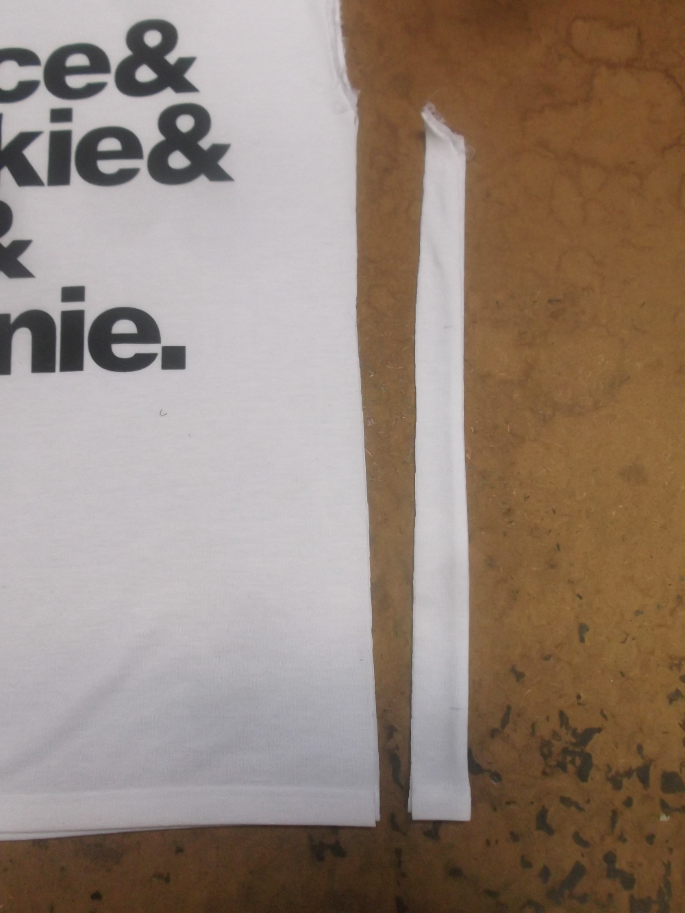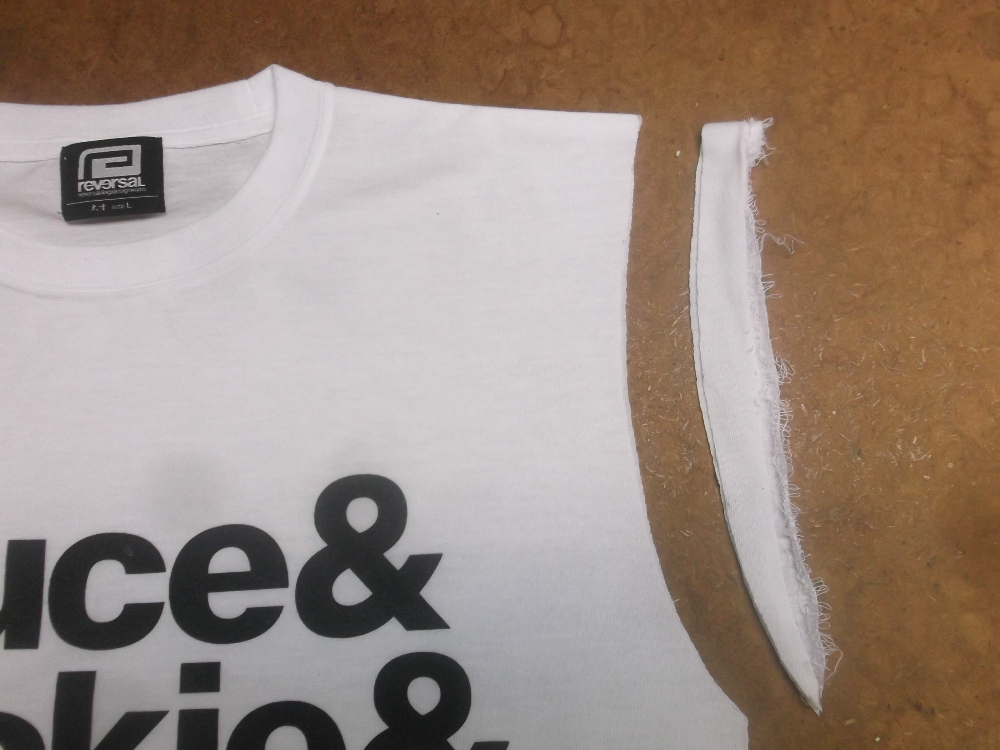 14枚目は着丈を見本のTシャツの長さに合う様に裾の生地をカットした写真です。