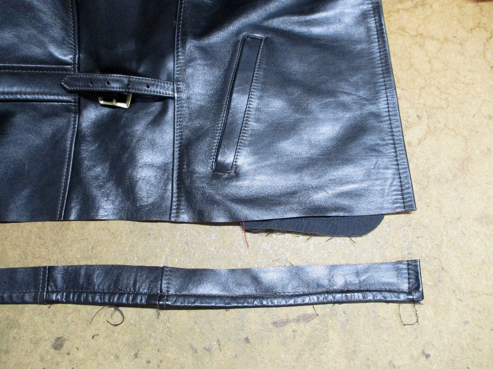 13枚目は表のレザー部分の裾をカットして着丈を短くしていきます。