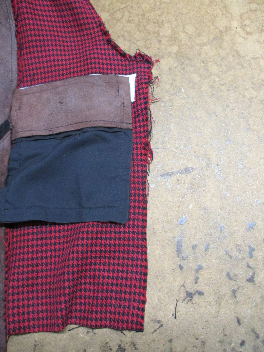 12枚目は裏地の裾のパーツ上の生地を着丈の長さ分カットした写真です。