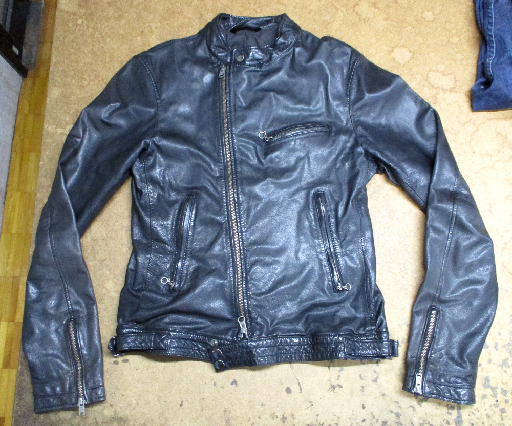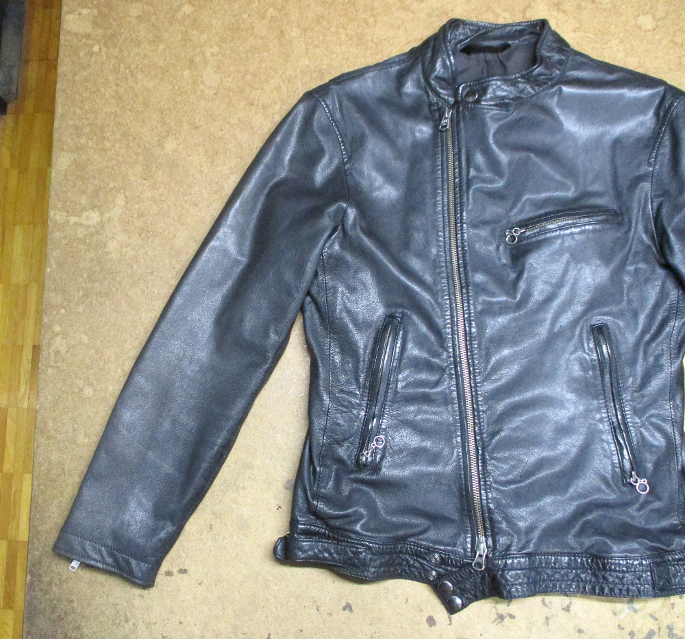 1枚目は東京都からの郵送のお客さんの袖先から長い袖丈を短くしていく前のライダースジャケットです。