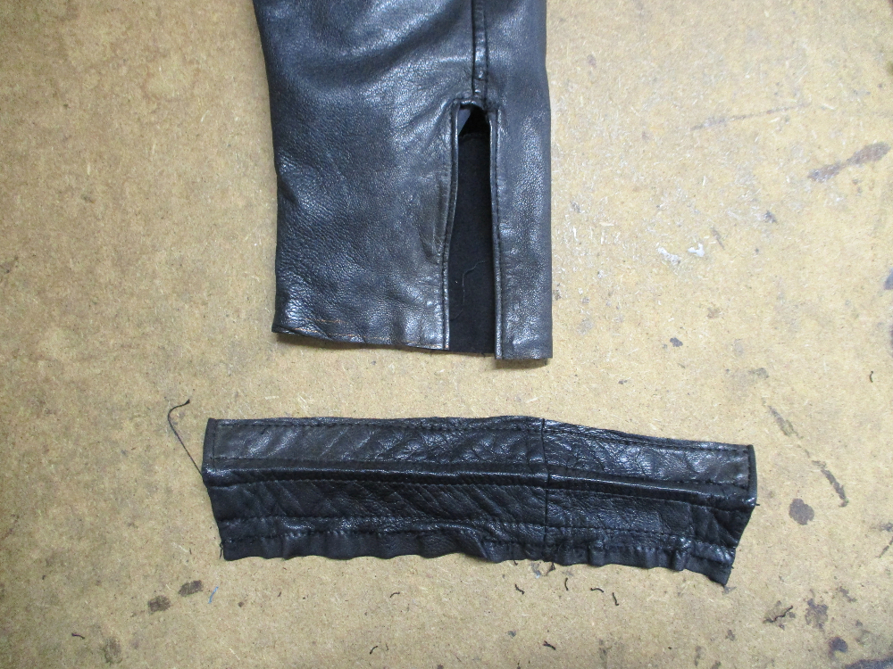 2枚目は袖先のファスナー部分のパーツをばらして袖先のレザーと裏地をカットして