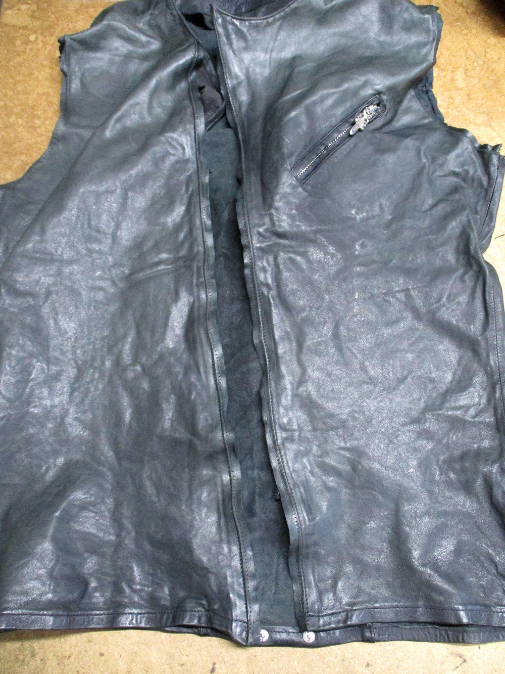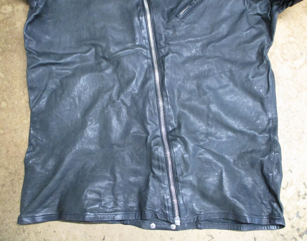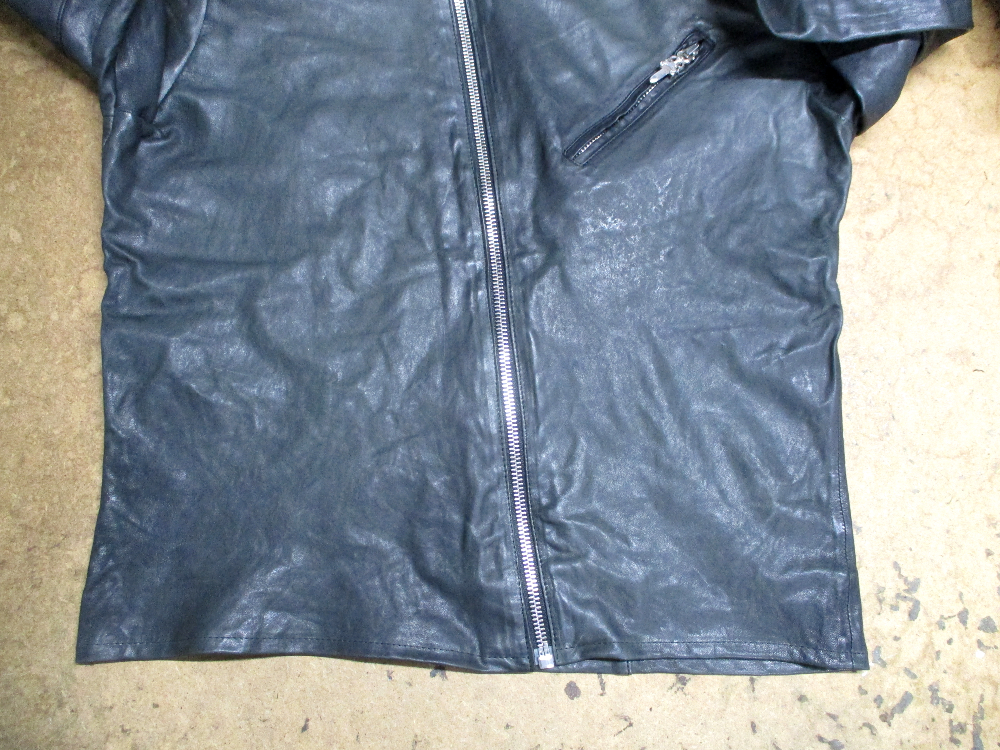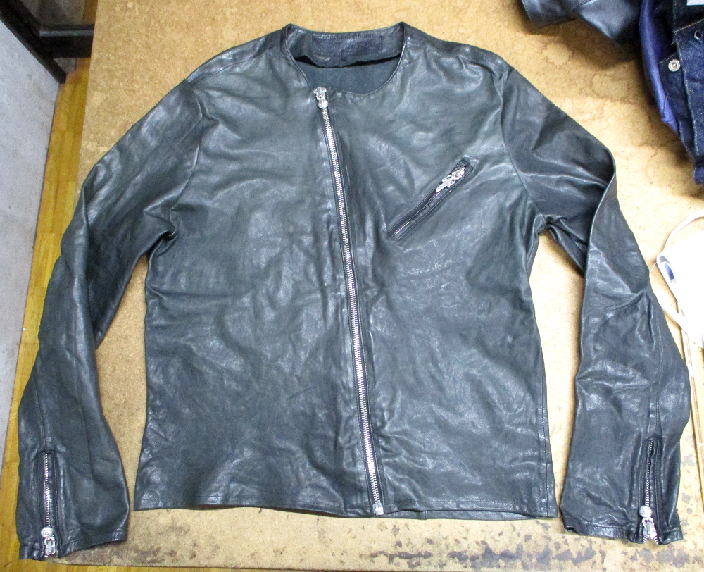 17枚目は18枚目との比較で袖丈と着丈を短くしていく前のレザージャケットです。