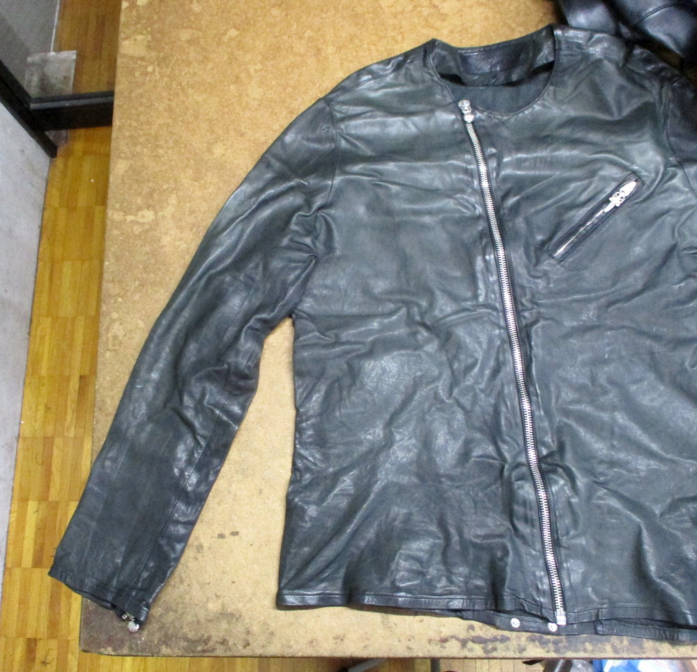 1枚目は愛知県からの郵送のお客さんの着丈と袖丈を短くしていく前のレザージャケットです。