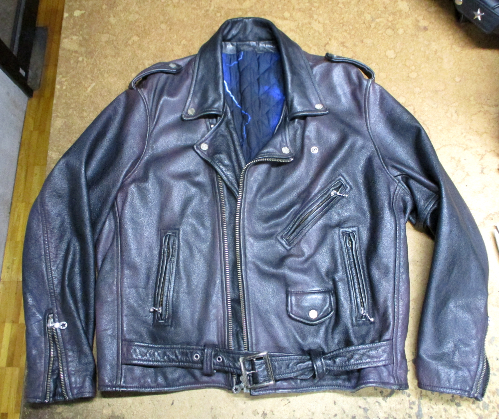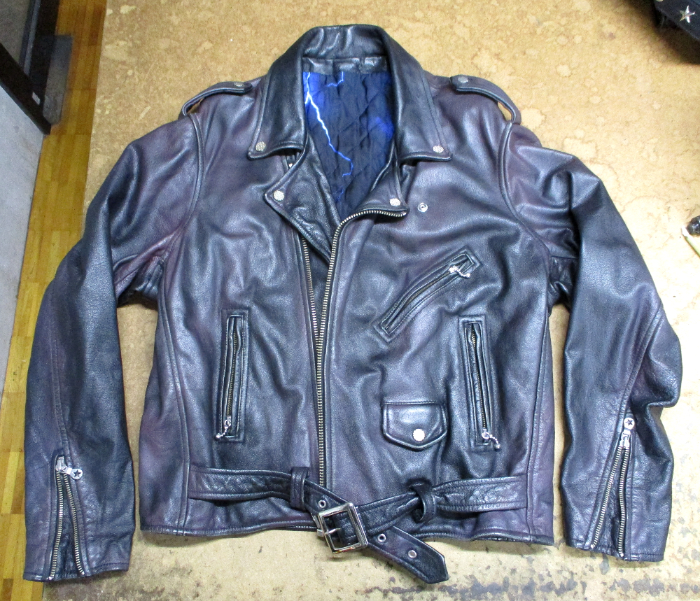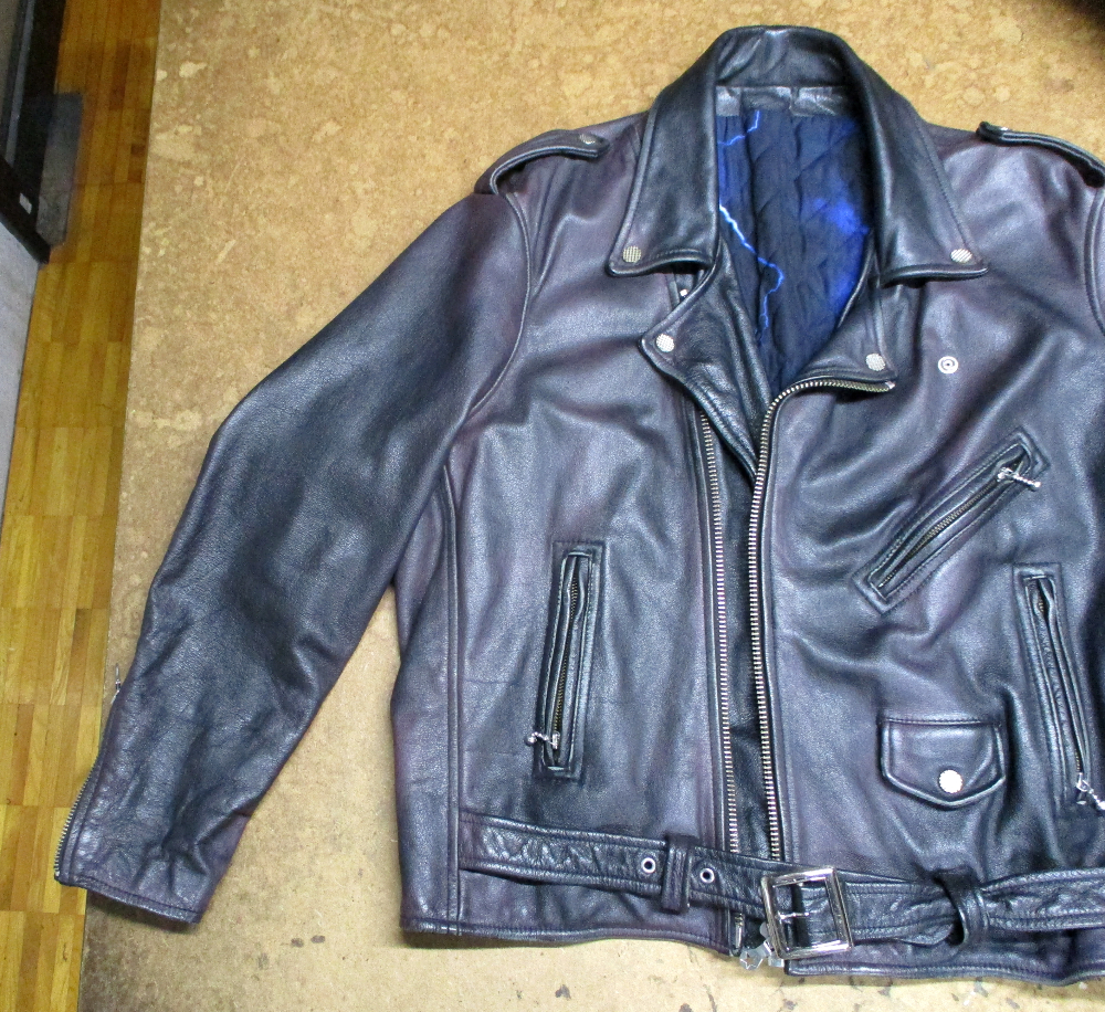 9枚目は10枚目との比較で袖丈を肩口から短くしていく前のライダースジャケットです。
