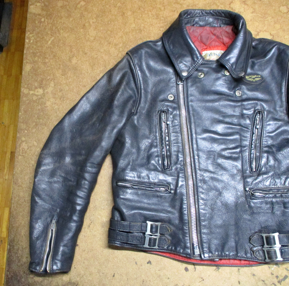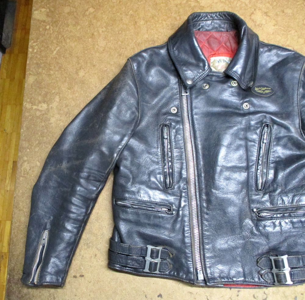1枚目は来店されたお客さんの長い袖丈と肘付近の幅を細くしていく前のライダースジャケットです。