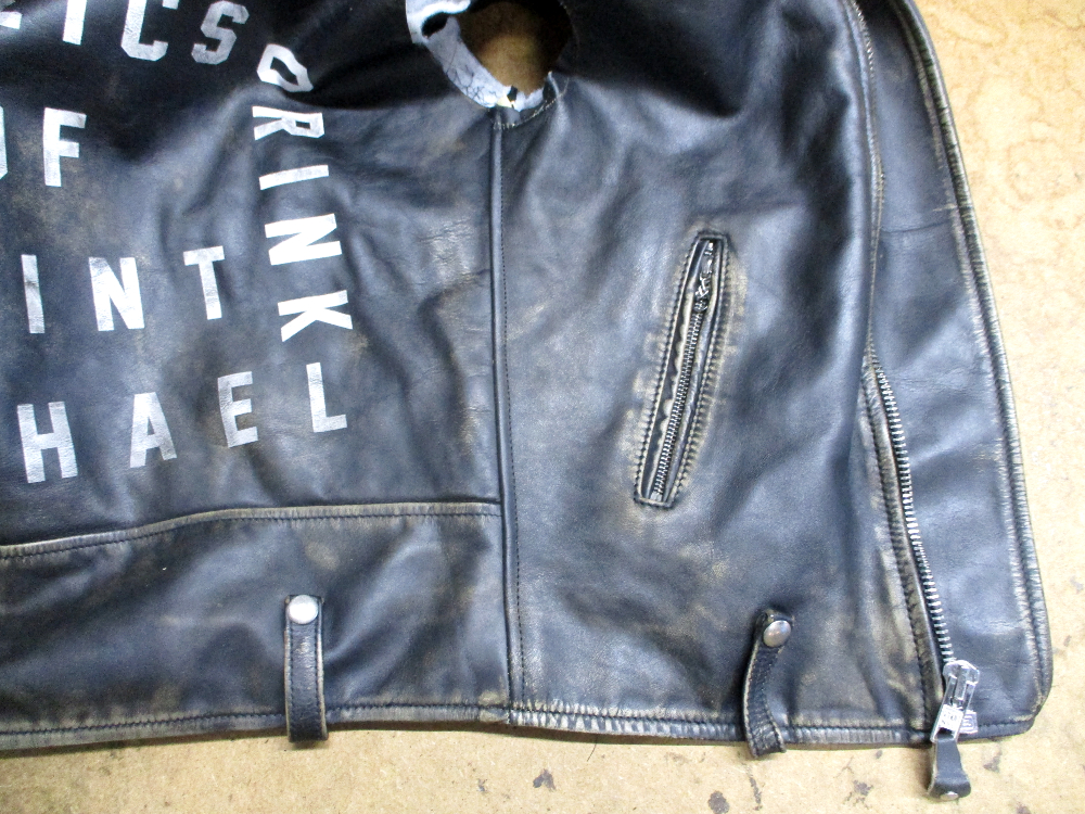 1枚目は来店されたお客さんのサイズを小さくしていく前のショットのライダースジャケットです。