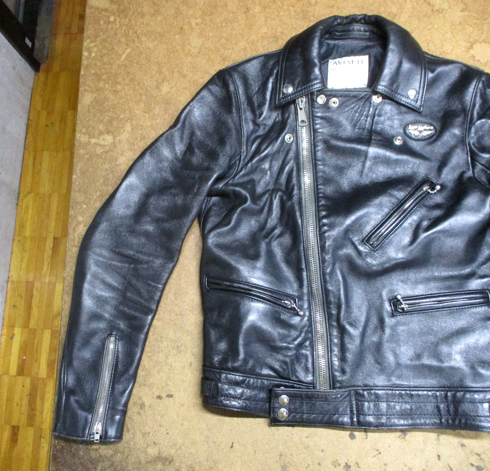 ルイスレザーのサイクロンの袖丈とファスナーの位置を変更していきます。