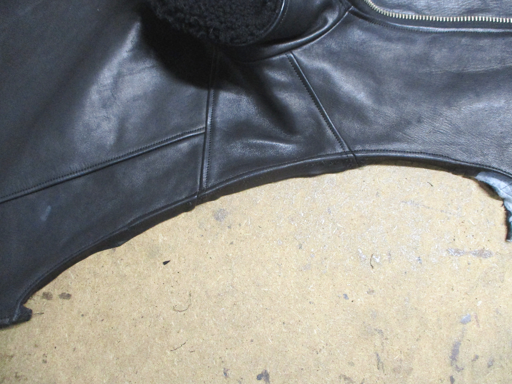 A-2フライトジャケットの革パーツ地の取り付けと両袖と腰回りのリブニットの交換次のページ