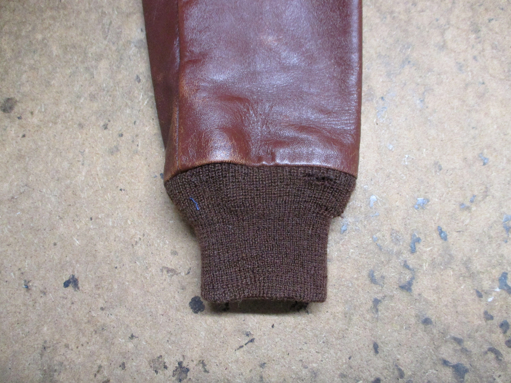 A-2フライトジャケットの革パーツ地の取り付けと両袖と腰回りのリブニットの交換