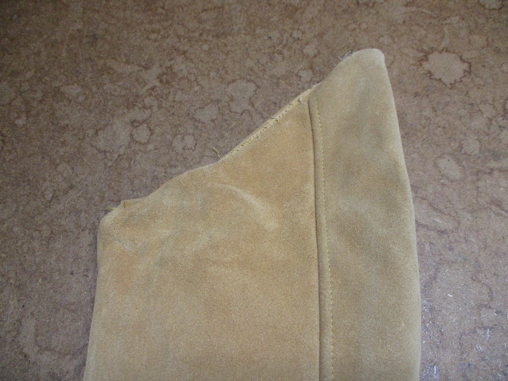 4枚目はスウェードの袖山部分をカットして袖丈を短くしていきます。