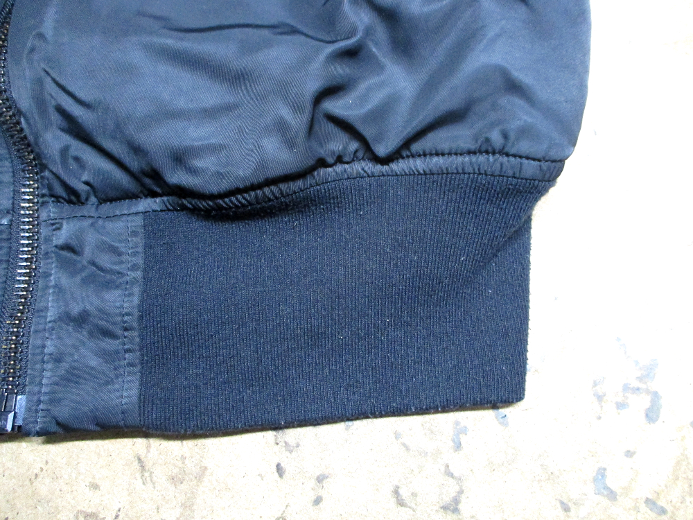 1枚目は神奈川県からの郵送のお客さんの所々破れだしてるリブニットを交換していくMA-1フライトジャケットです。