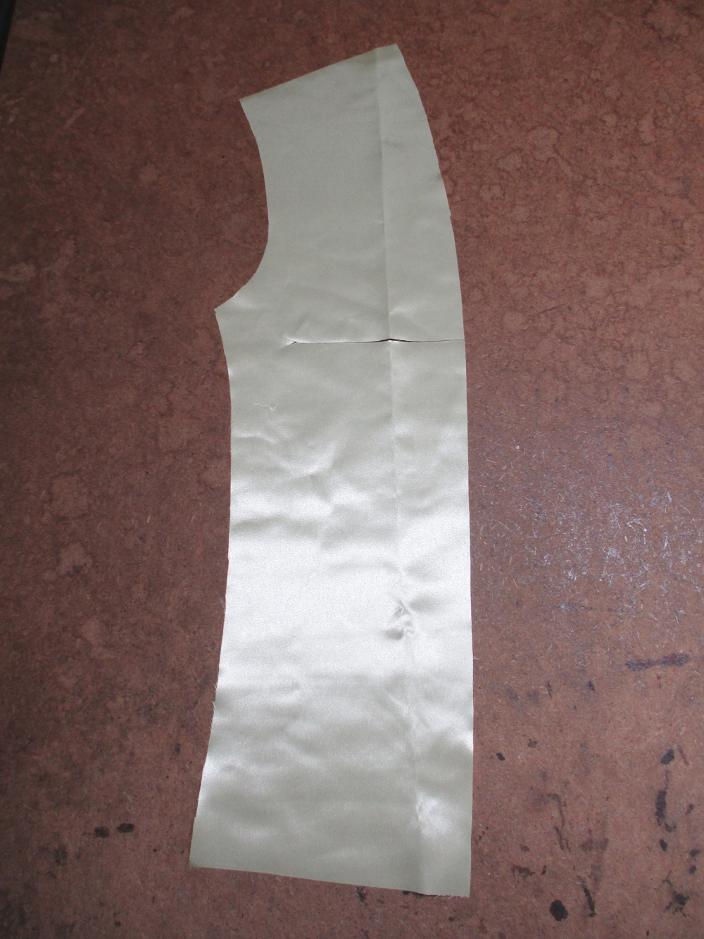 18枚目は新しいサテン生地で裏地の袖のパーツの内側をカットした写真です。