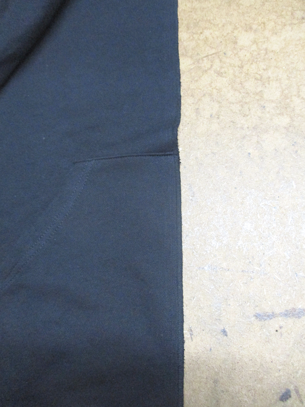 7枚目はパーカーの前身ごろのセンターの生地をカットした写真です。