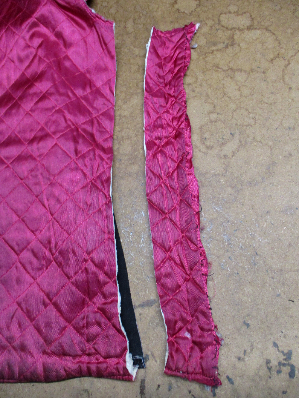 8枚目は裏地側の脇から裾のサイドの生地をカットした写真です。