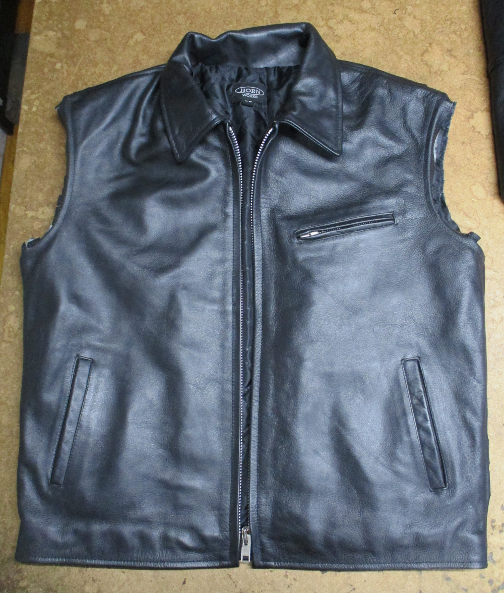 1枚目は福岡県からの郵送のお客さんの長い袖丈を短くしていく前のレザージャケットです。