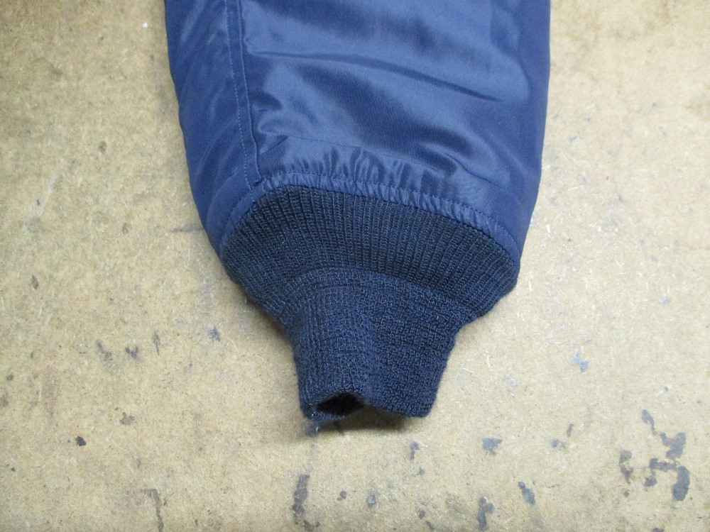 L-2Aフライトジャケットの襟、両袖、腰回りのリブニットを新しいものに交換していきます。