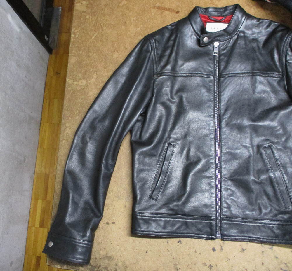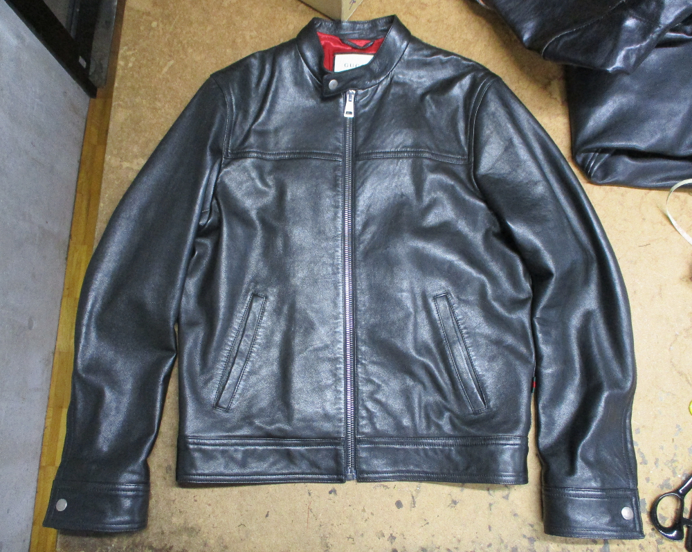 グッチの長い袖丈のレザージャケットをお客さんの好みの長さに短くリサイズ