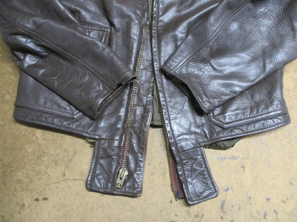 1枚目は福岡県からの郵送のお客さんの両袖と腰回りのリブニットを新しいものに交換していく前のG-1フライトジャケットです。
