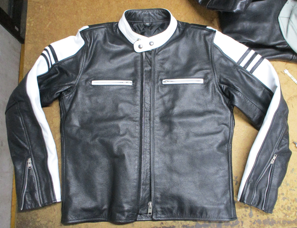 12枚目は13枚目との比較で袖丈を肩口から短くしていく前のレザージャケットです。