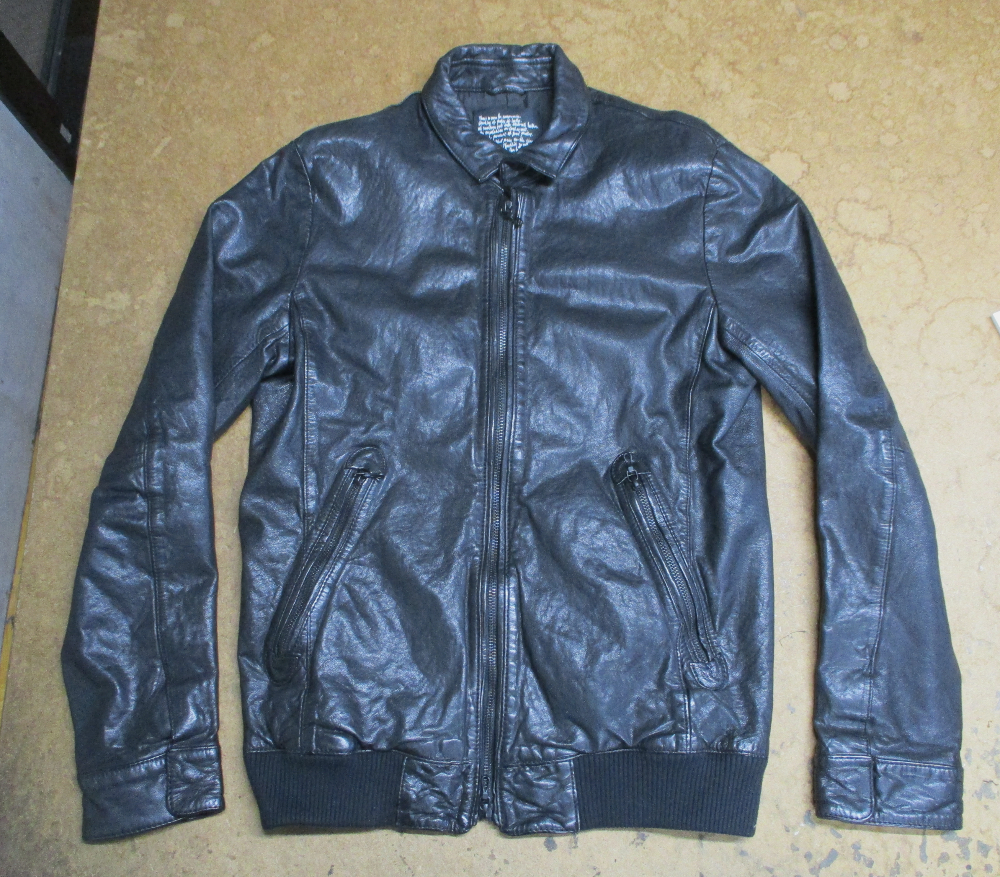 1枚目は神奈川県からの郵送のお客さんの長い袖丈を短くしていくレザージャケットです。