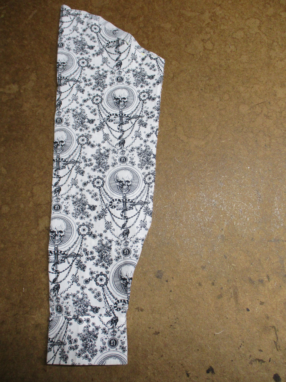 14枚目は見本の幅に合わせて脇から肘にかけて生地をカットしてきます。