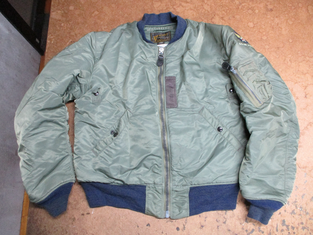 1枚目は秋田県からの郵送のお客さんの襟、両袖、腰回りのリブニットを交換していく前のMA-1フライトジャケットです。