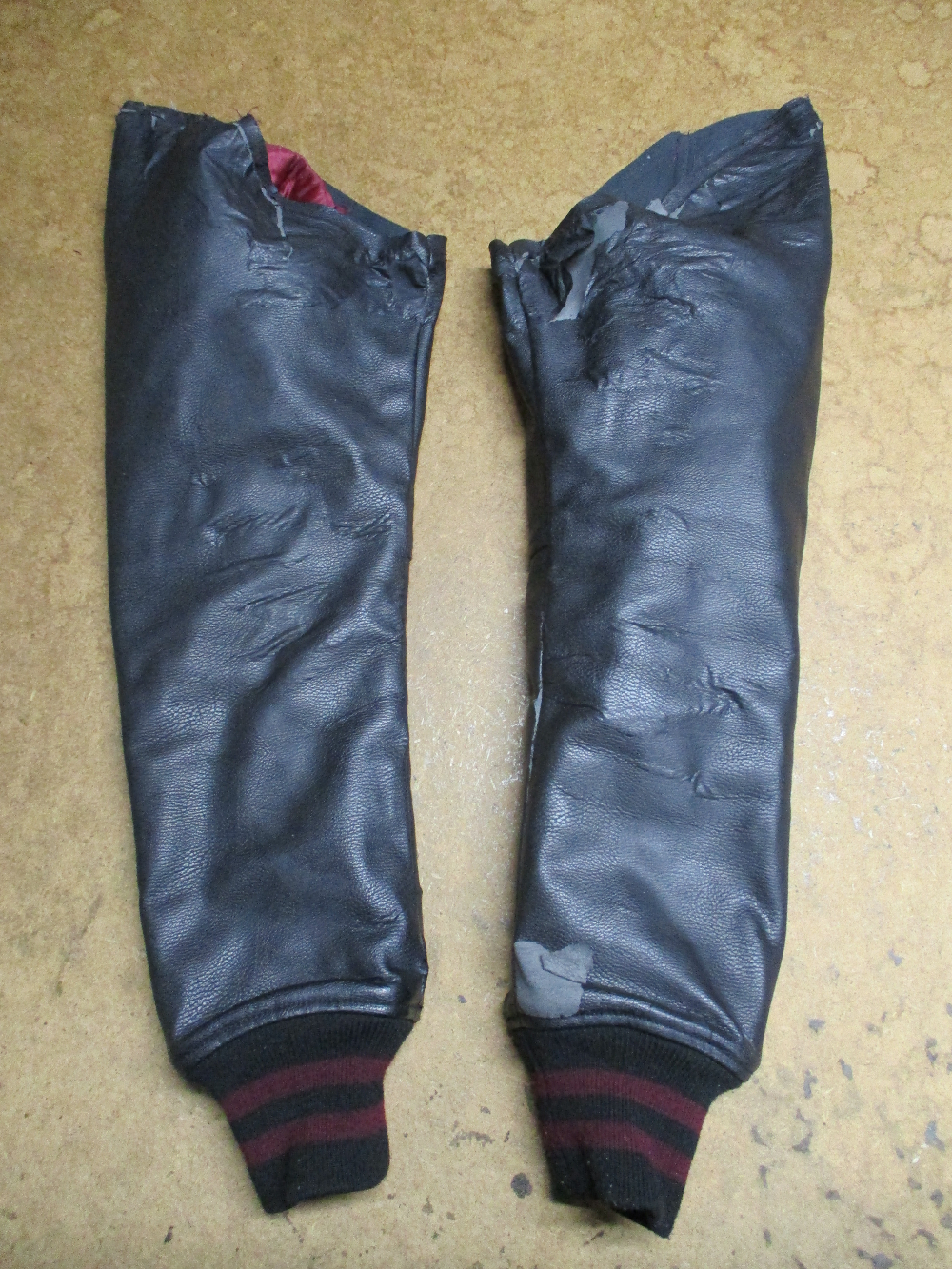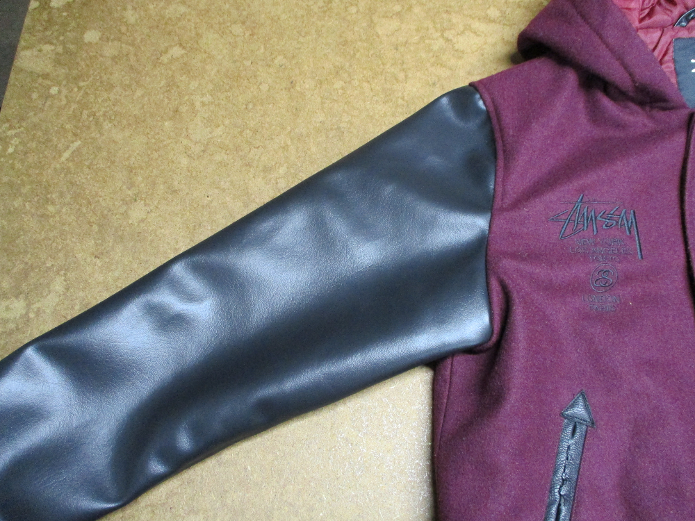 ステューシーのスタジャンの袖の合革を新しいものに交換