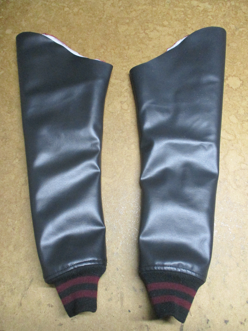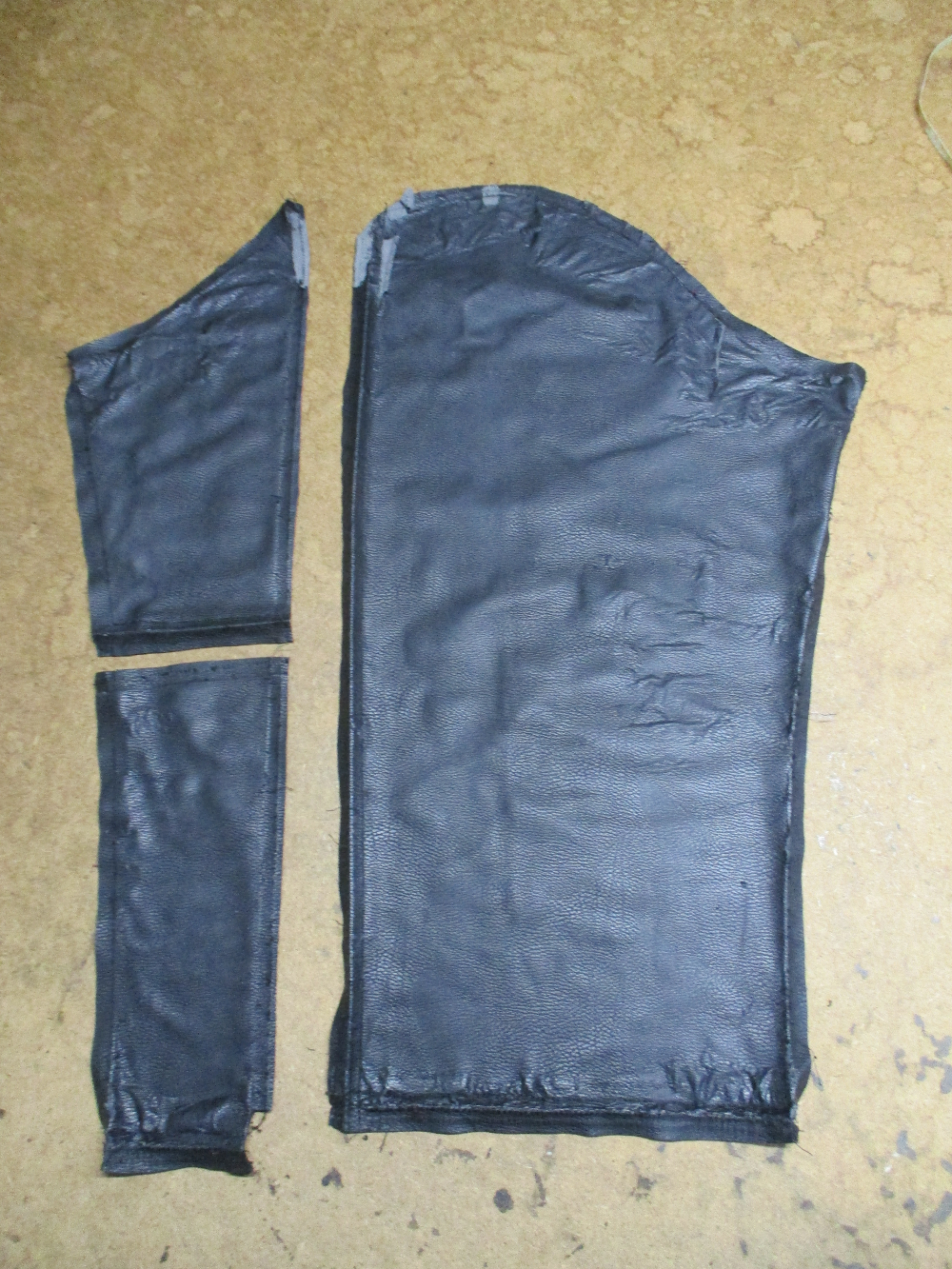 17枚目は新しい合革の生地で袖のパーツを作った写真です。