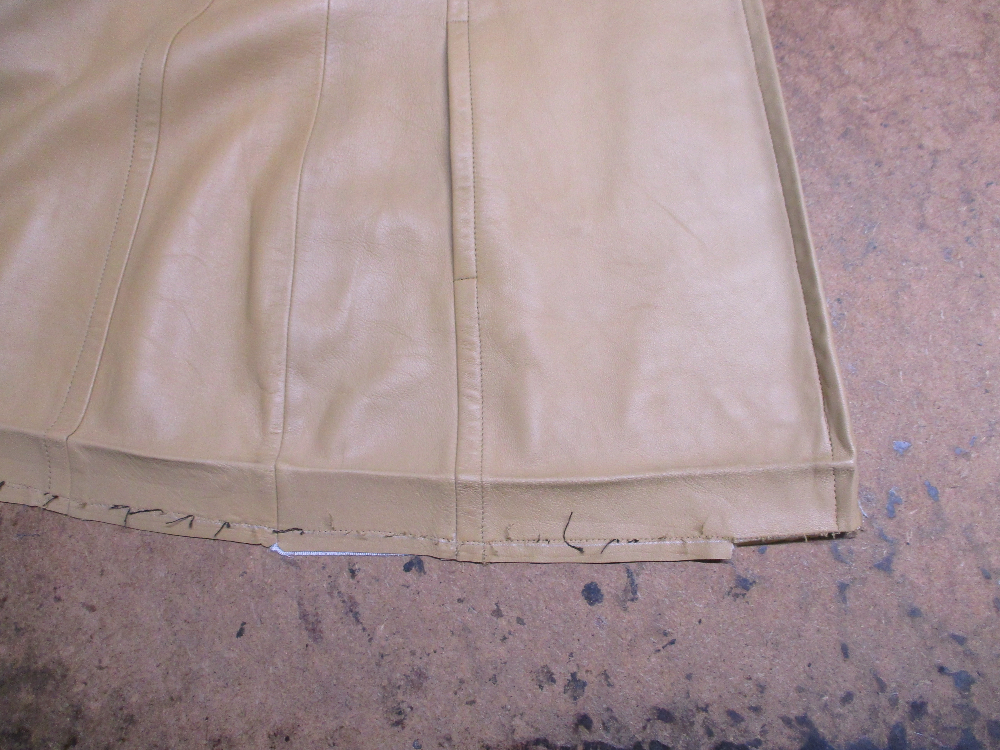 8枚目は表のレザー部分の裾をカットして着丈を短くしていきます。