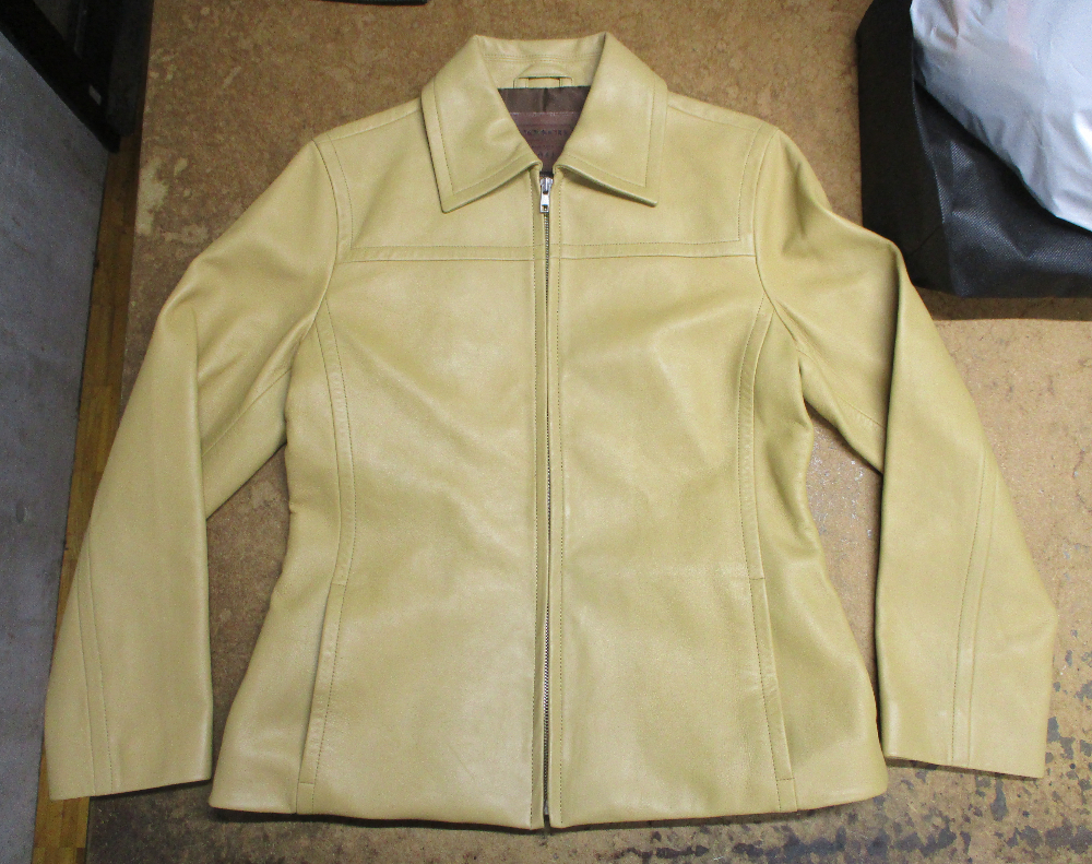 1枚目は東京都から郵送のお客さんの着丈を短くしていく前のレザージャケットです。