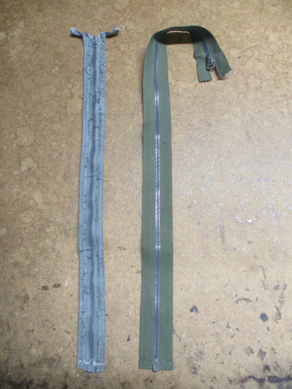 L-2Bフライトジャケットの壊れたジッパーを新しいクラウンジッパーに交換していきます。