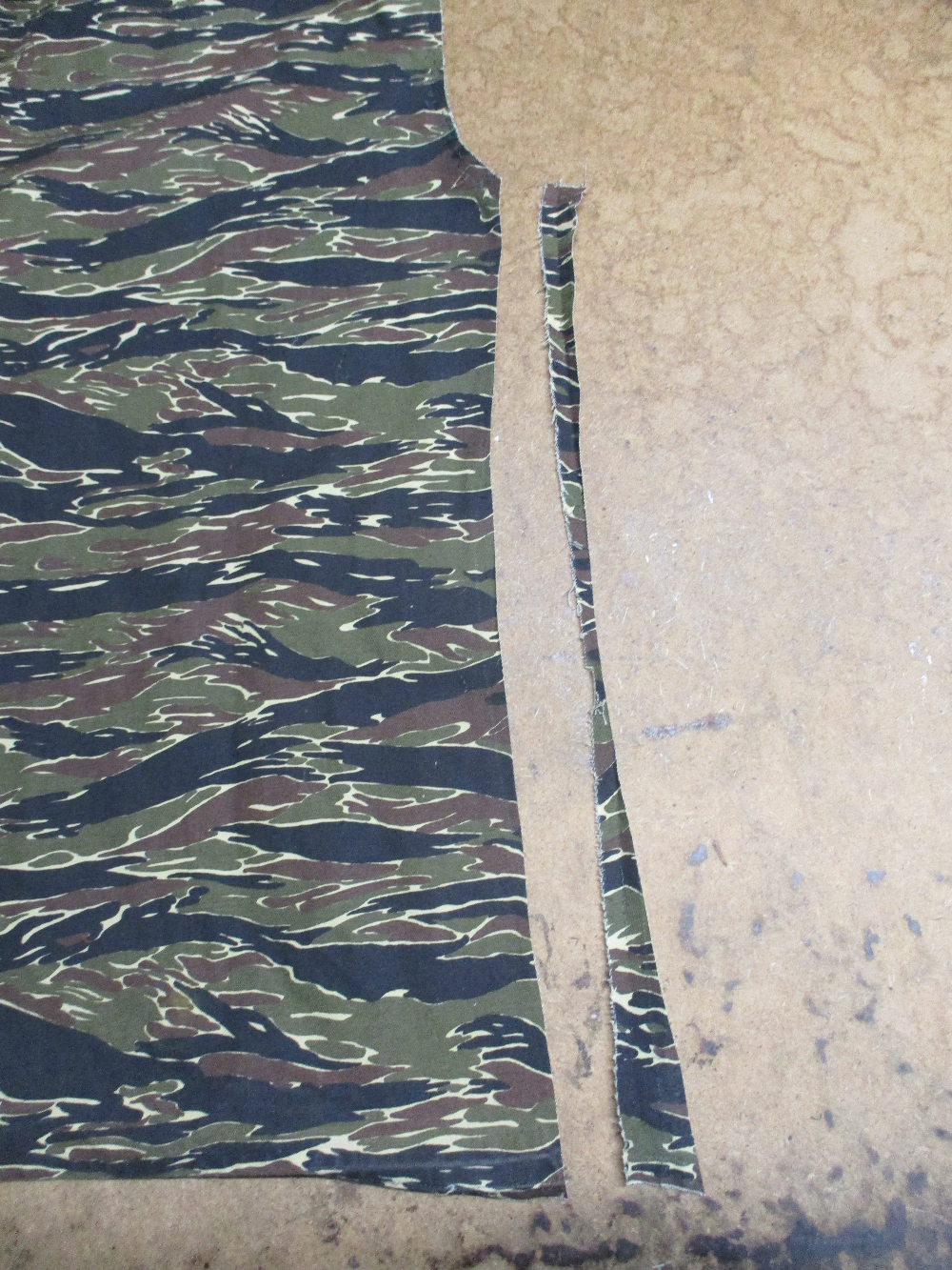 7枚目は後ろ身ごろの脇から裾のサイドの生地をカットした写真です。
