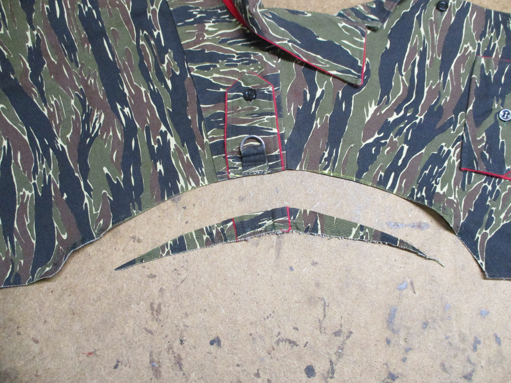 10枚目は着丈以外の肩幅、身幅、裾幅の生地を見本のシャツの幅に合う様に生地をカットした写真です。