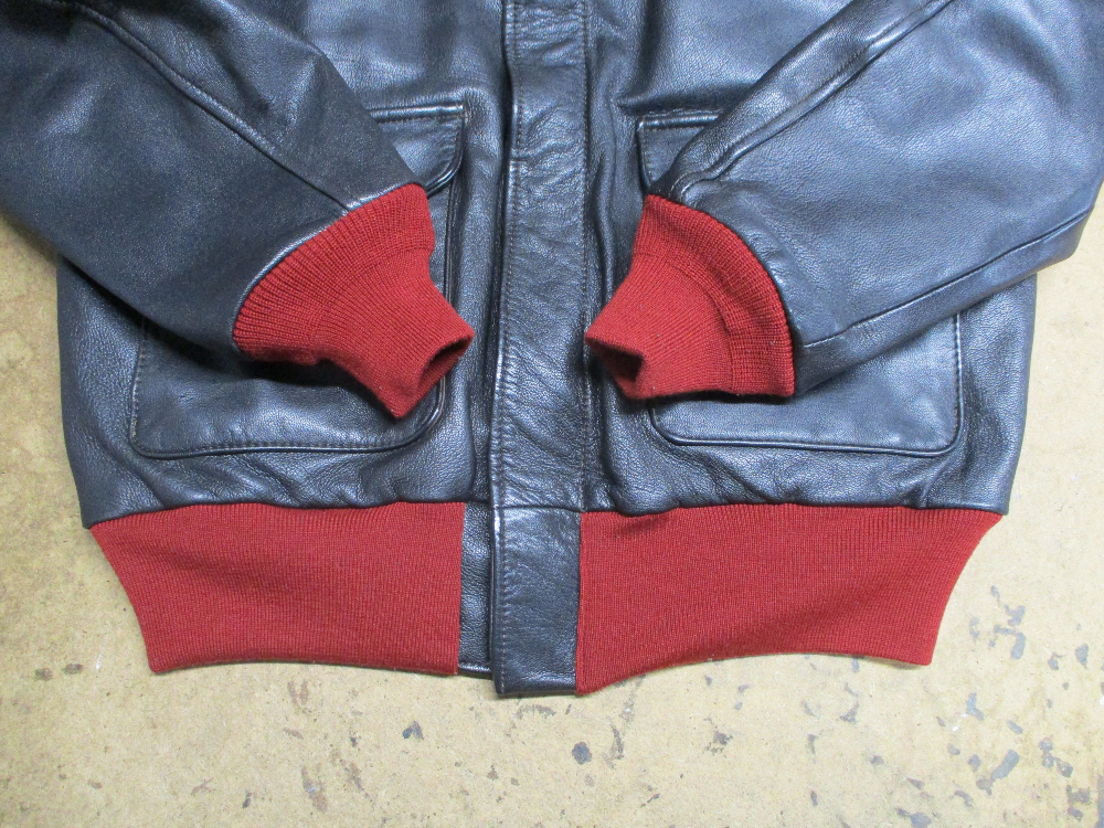 1枚目は福島県からの郵送のお客さんの両袖と腰回りのリブニットを赤リブに交換していくA-2フライトジャケットです。