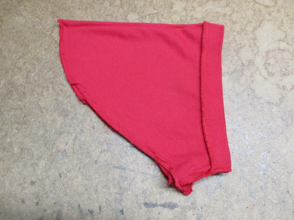 10枚目は袖のパーツを見本のポロシャツの幅に合う様に生地をカットしていきます。