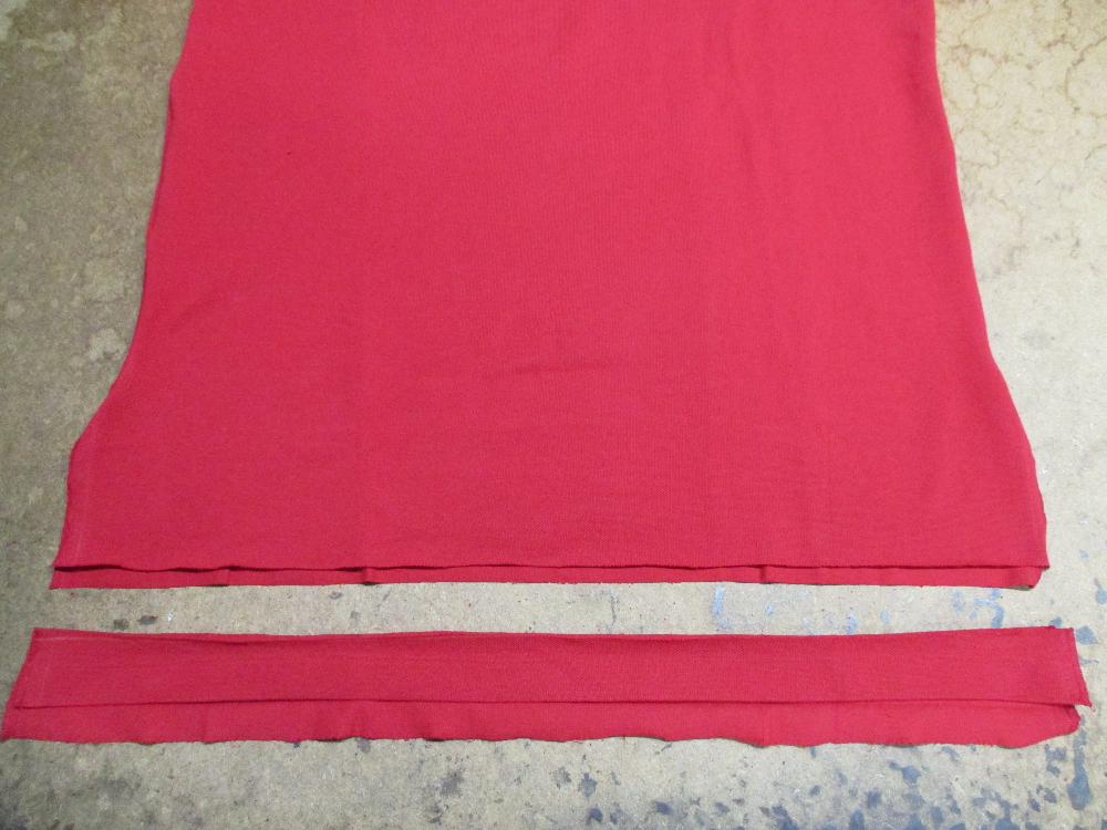 8枚目は着丈以外の肩幅、身幅、裾幅の生地をカットした胴体の写真です。