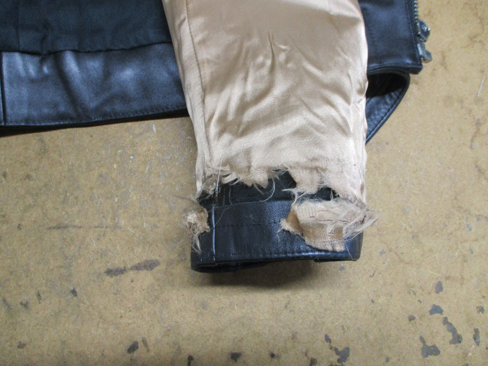 1枚目は愛媛県からの郵送のお客さんの左右の袖のパーツを新しく交換していく前のライダースジャケットです。